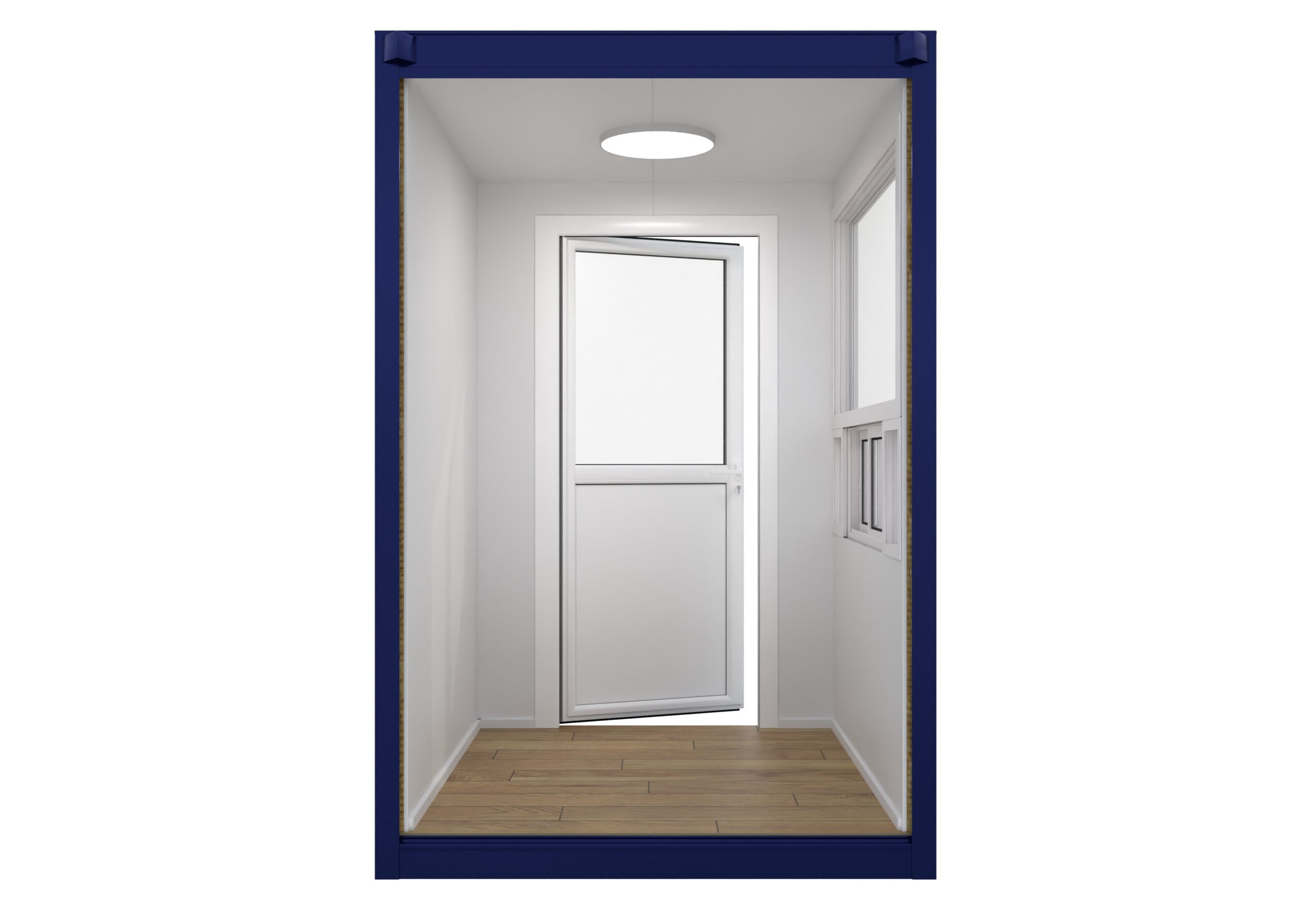 - Echipamente și dotări: Cabina este dotată cu un sistem de iluminare eficient, ventilare adecvată și, la cerere, poate fi echipată cu aparate de aer condiționat, încălzire și mobilier specific necesităților personalului de pază (scaune ergonomice, birouri, dulapuri).