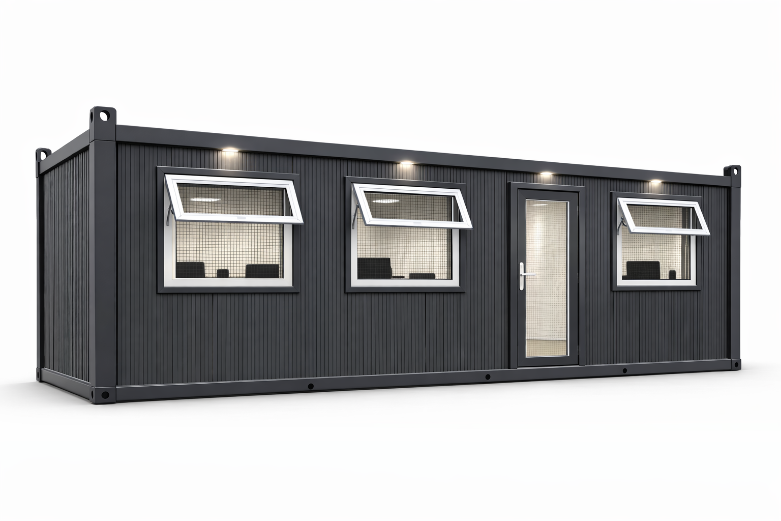 - Construcție Durabilă: Fabricat din materiale de înaltă calitate, containerul birou asigură rezistență și durabilitate în diverse condiții de mediu. Structura robustă garantează protecție împotriva intemperiilor și uzurii zilnice.
