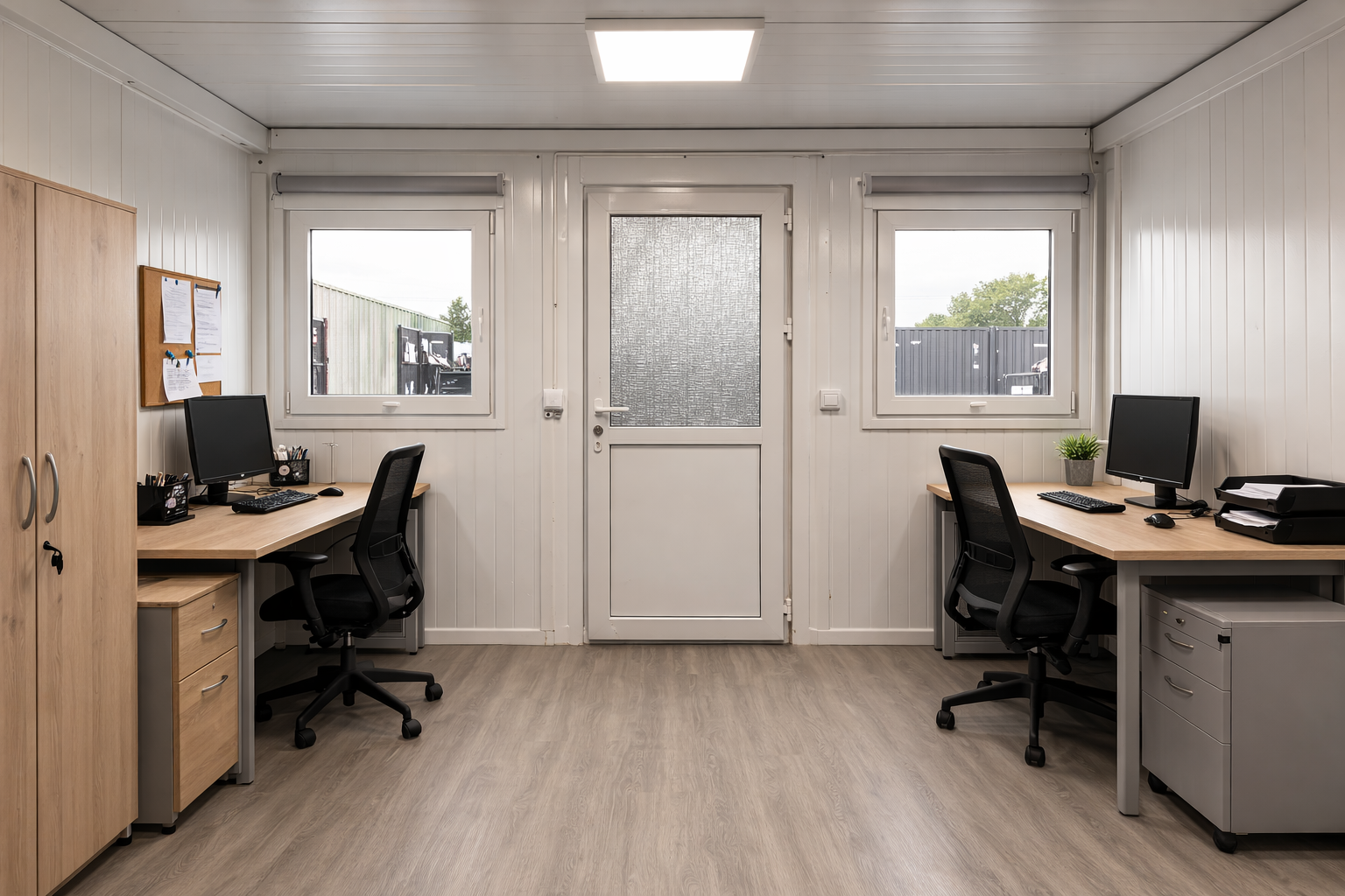 - Facilități Complete: Dotat cu ferestre mari pentru iluminare naturală, sistem de climatizare, prize electrice, și posibilitatea de conectare la internet, containerul birou este pregătit să îndeplinească toate necesitățile unui spațiu de lucru modern.