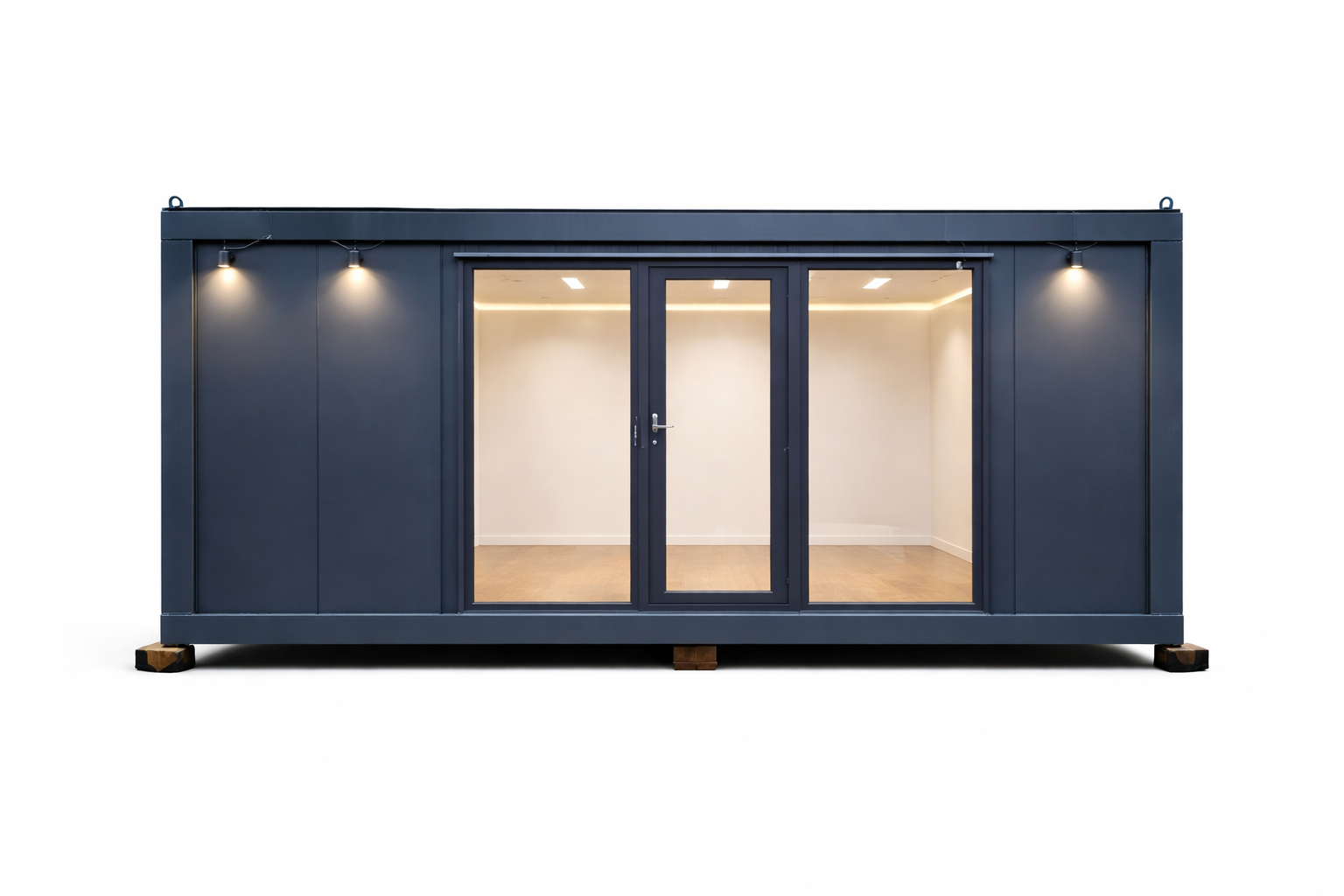 Containerul comercial modular 6 × 4,8 m este o soluție modernă pentru magazine, birouri sau spații comerciale. Spațiul poate fi personalizat în funcție de necesități și poate fi realizat și în alte dimensiuni la comandă.
