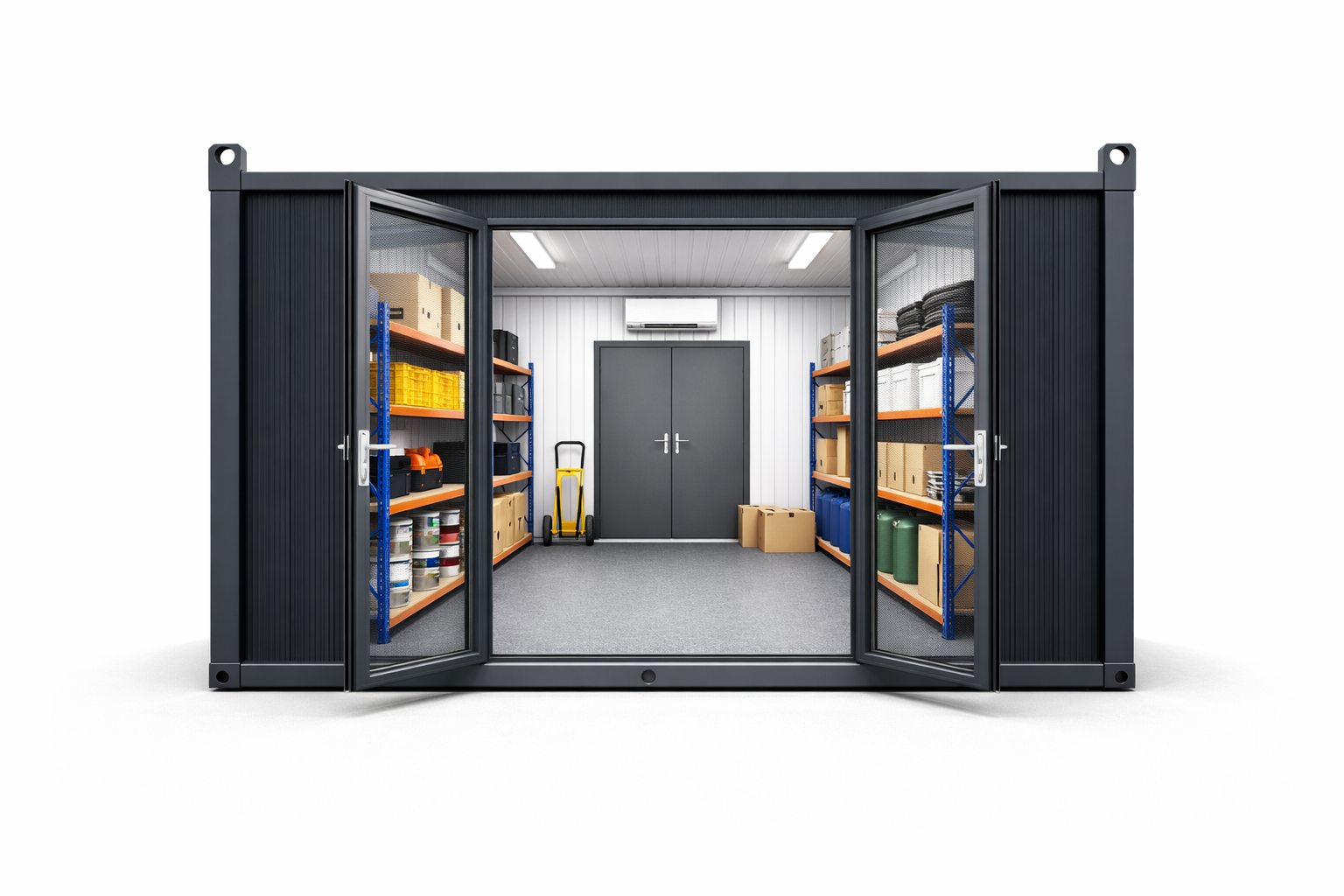 Container depozitare 6m ideal pentru depozitare, birouri sau spatii comerciale, complet personalizabil si disponibil in dimensiuni variate, realizat la comanda in functie de nevoile tale.